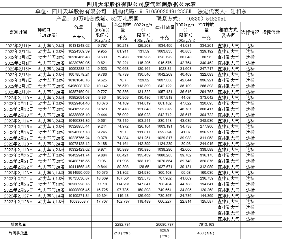 四川天華股份有限公司2022年2月廢水監測數據公示